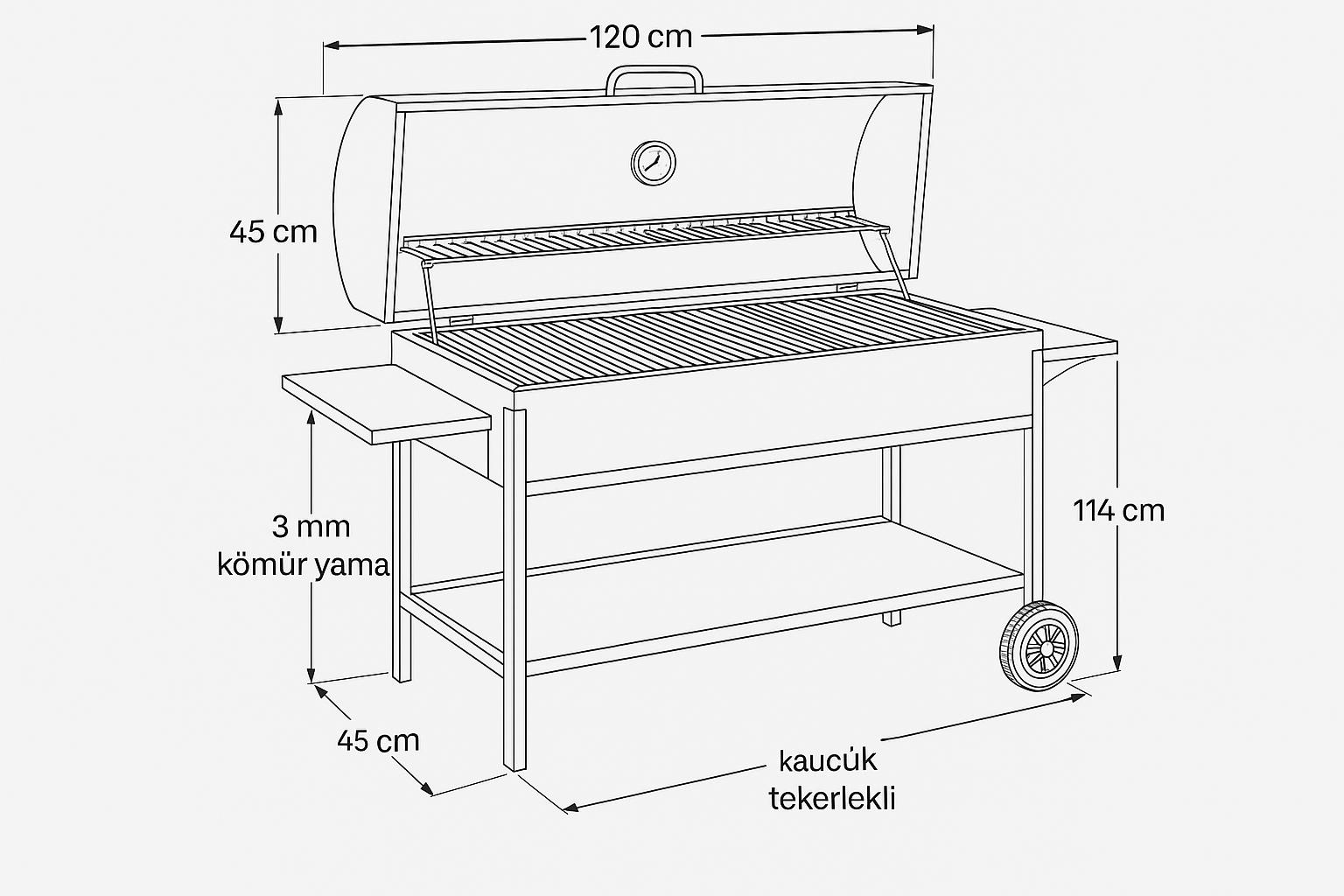 120 cm Paslanmaz Çelik Barbekü – Kapaklı & Dereceli