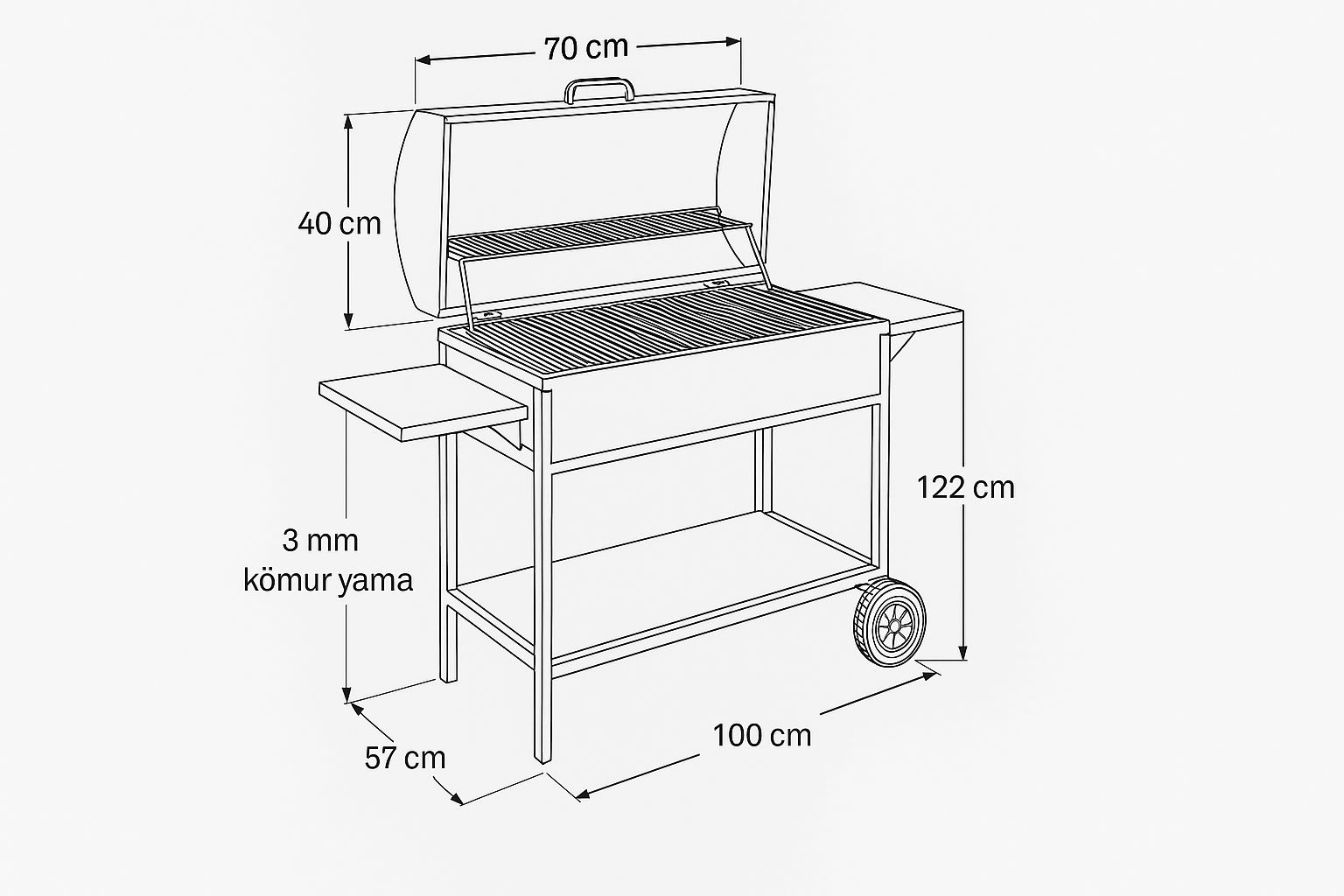 7 mm çelik transmisyon ızgaralar ile uzun ömürlü ve gerçek barbekü keyfi sunar.